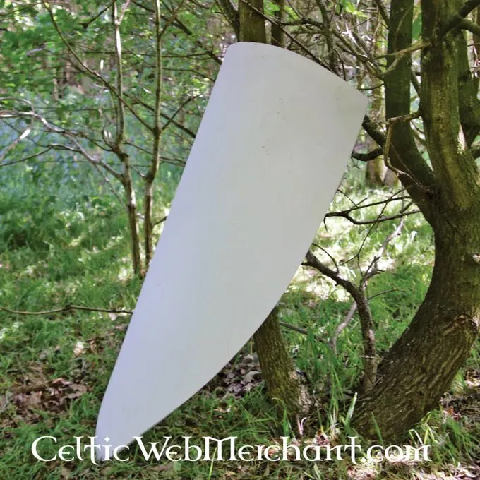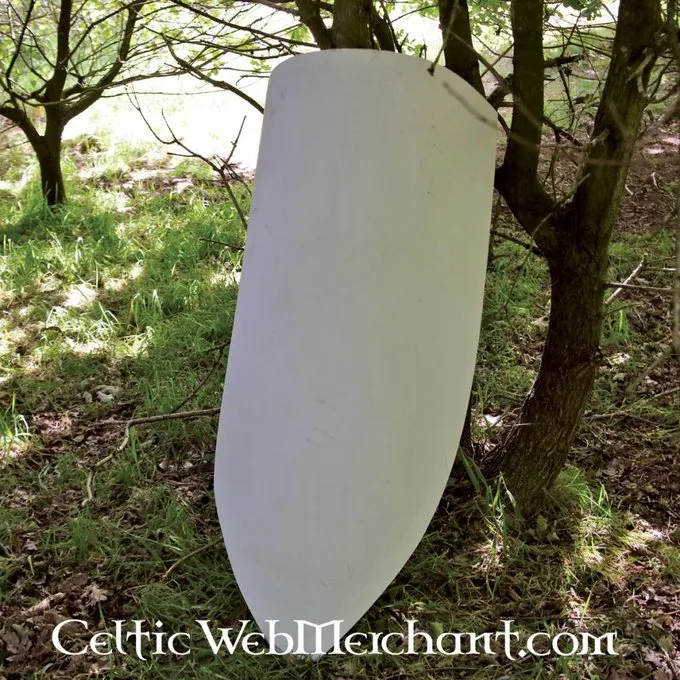 Schilden zoals deze waren de doorontwikkeling van de exemplaren die op het tapijt van Bayeux staan afgebeeld. De schilden hadden een plattere bovenkant. Schilden zoals deze werden tussen de 12de en 13de eeuw gebruikt. Ze werden oa. tijdens de kruistochten wijds gebruikt.