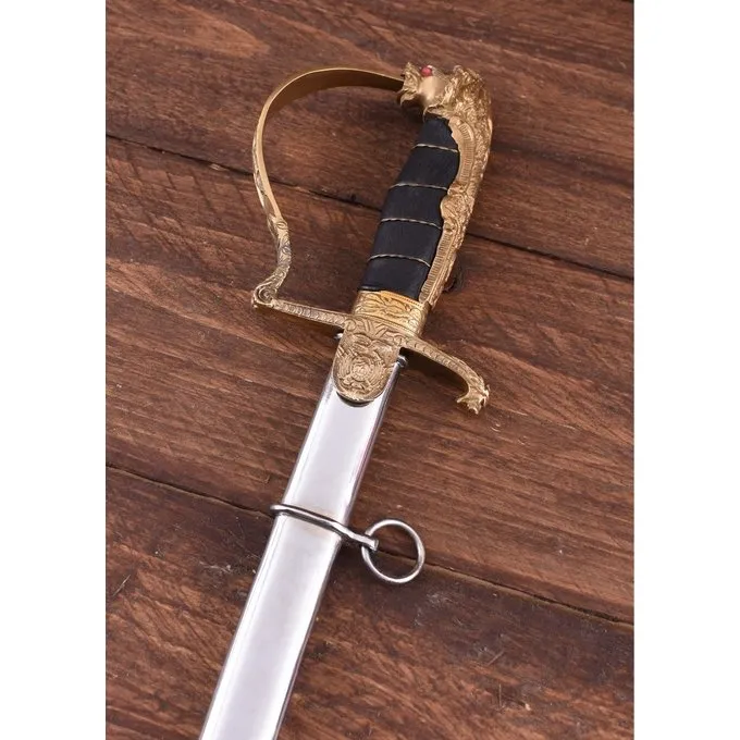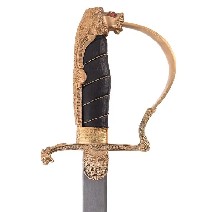 Sabels met leeuwenkoppen als decoratie werden veelal gebruikt door Pruissische en Duitse officieren tijdens de Eerste en Tweede Wereldoorlog. Er waren veel variaties op deze sabel. Deze sabel is geen exacte replica van een historisch origineel, maar is gebaseerd op verschillende elementen van ceremoniële sabels die Duitse officieren droegen tijdens de Tweede Wereldoorlog.