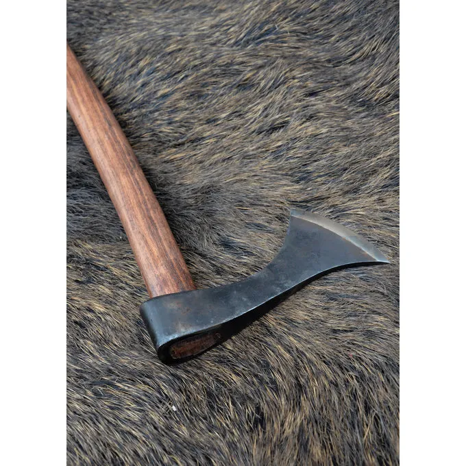 Materiaal: koolstofstaal, hout / Snede: scherp / Lengte: 45 cm / Lengte bijlkop: 18 cm / Gewicht: 800 g / Geschikt voor bijlwerpen, bij intensief gebruik de schacht op termijn vervangen / Gebaseerd op een historisch origineel