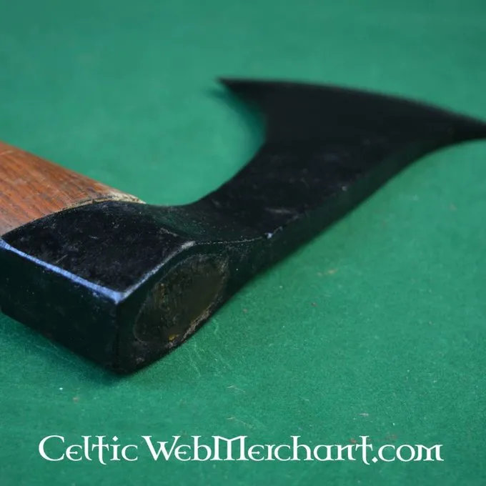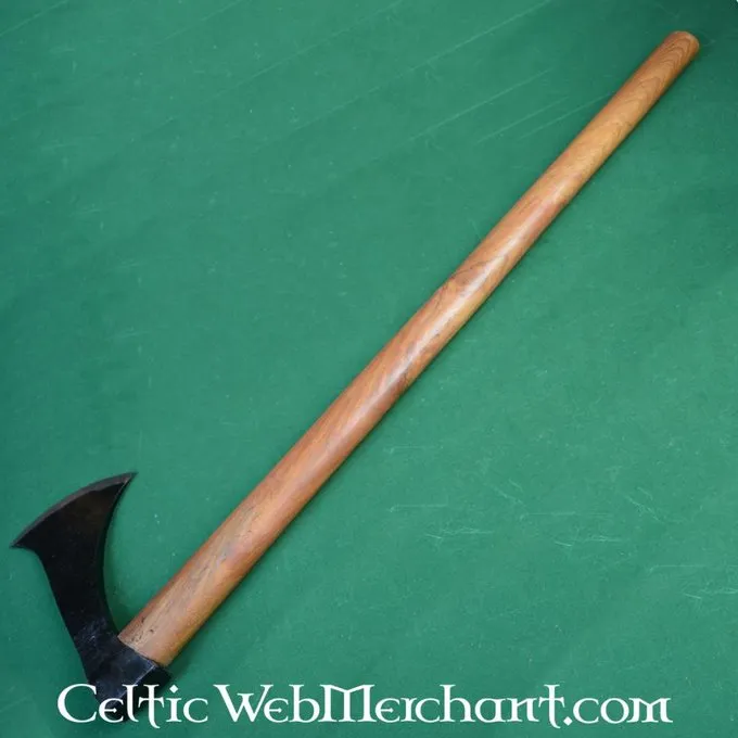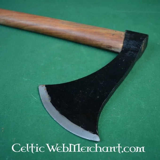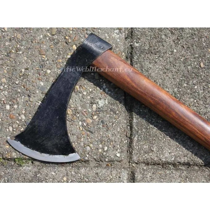 Deze fransiskabijl is 81 cm lang en heeft een handgesmeed blad van ijzer met een maximale lengte van 24 cm. Gewicht 1,6 kg, het blad wordt semi-scherp aangeleverd.