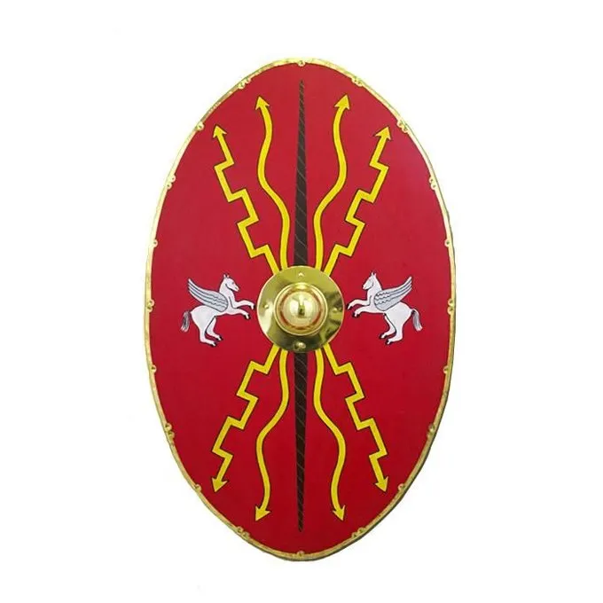 Dit schild is gemaakt naar verschillende exemplaren die werden gebruikt door de auxiliae in dienst van het Romeinse leger. Dit type schilden werden hoofdzakelijk door de cavalerie gebruikt.