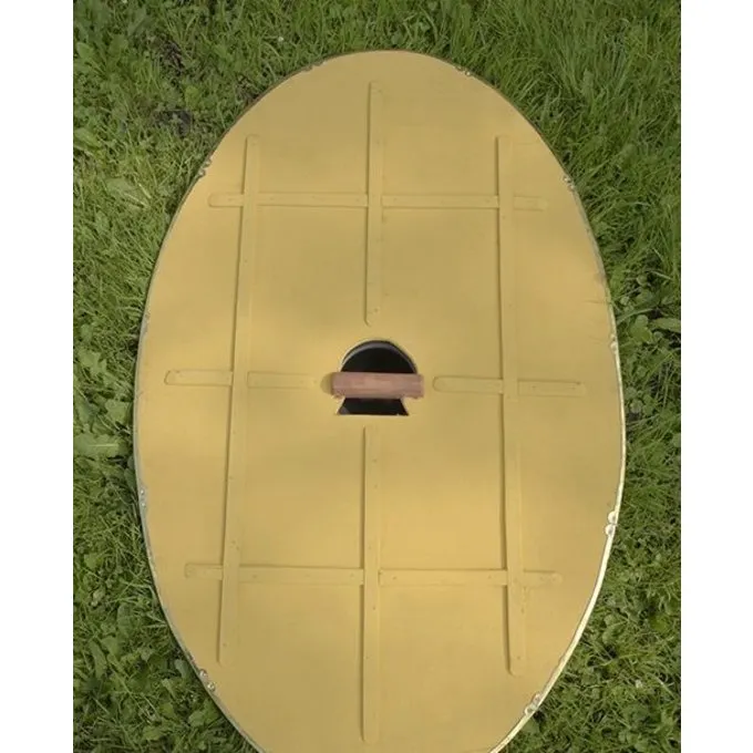 Dit schild is een replica van exemplaren die door de Romeinse auxiliae werden gebruikt. De equestris waren gehuurde ruiterij. Deze Auxiliae waren ware specialisten in cavalerieoorlogvoering.