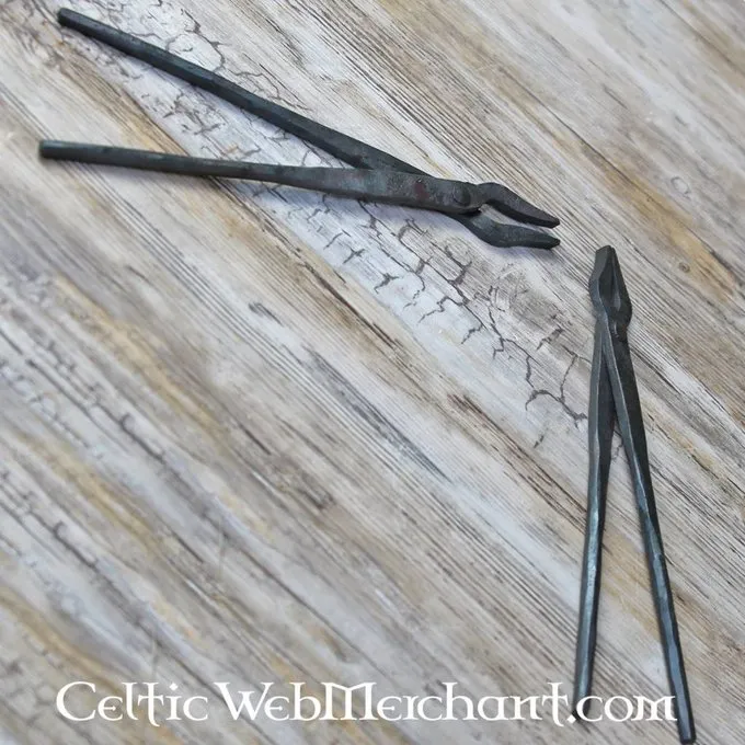 Deze twee tangen zijn met de hand van staal gemaakt Ze zijn elk 21 cm lang en zijn geschikt voor het vlechten van ongeklonken maliën.