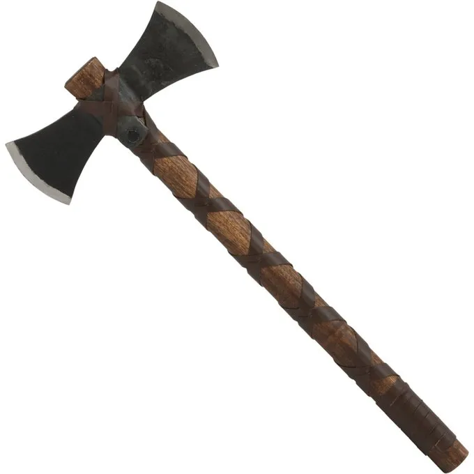 Deze Vikingbijl is gebaseerd op vroegmiddeleeuwse originelen en exemplaren gebruikt in series zoals Vikings en The Last Kingdom. Tijdens de vroege middeleeuwen waren bijlen een onmisbare tool. Ze werden als wapen gebruikt, als gereedschap voor het hakken van brandhout, voor reparaties etc. Deze bijl heeft een handgesmede afwerking en een houten schacht. De schacht en het bijlblad zijn gedecoreerd met leren banden. Een perfecte accessoire voor Viking re-enactment of voor Vikingskostuums.
