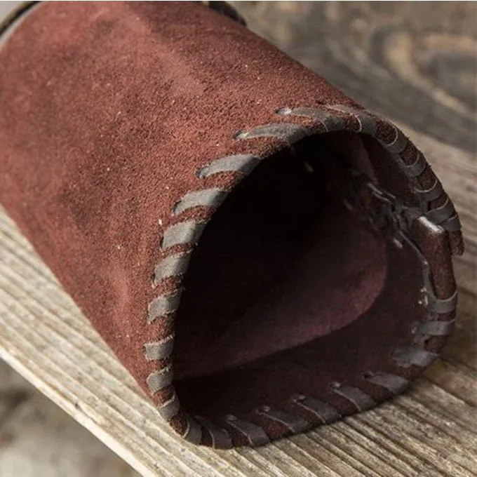 Deze pijlenkoker heeft een design dat geschikt is voor middeleeuws re-enactment, ook is hij perfect voor LARP en Cosplay. Een luxe pijlenkoker gemaakt van hoge kwaliteit runderleer en suedeleer. Aan de achterkant en bovenkant heeft hij gestikte leren details die de pijlenkoker een handgemaakt historisch uiterlijk geven. Met de leren riem kan hij over de schouder gedragen worden.