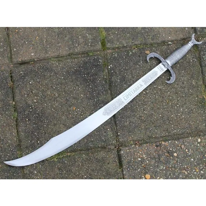 Een deel van het blad van deze kromsabel is ingegraveerd. De pommel is in de vorm van de maansikkel van de islam. Hij is 73 cm lang en heeft een kling van ongeveer 59 cm.