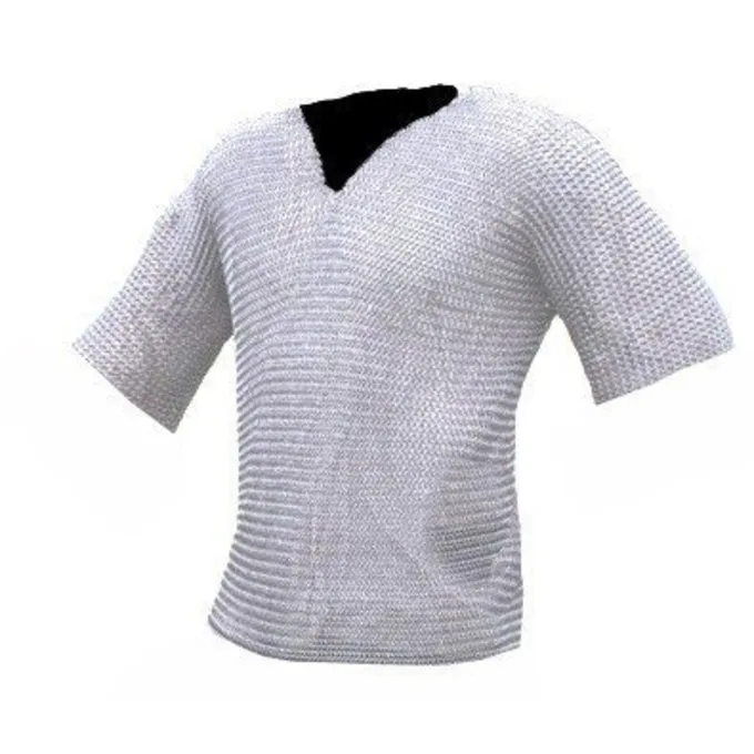 Deze maliënkolder is gemaakt van 1,6 mm dikke, verzinkte, ongeklonken ringen ringen met een binnendiameter van 8 mm dik. De ringen zijn met de hand vier in één gevlochten. De maliënkolder heeft korte mouwen en komt tot aan de heup.