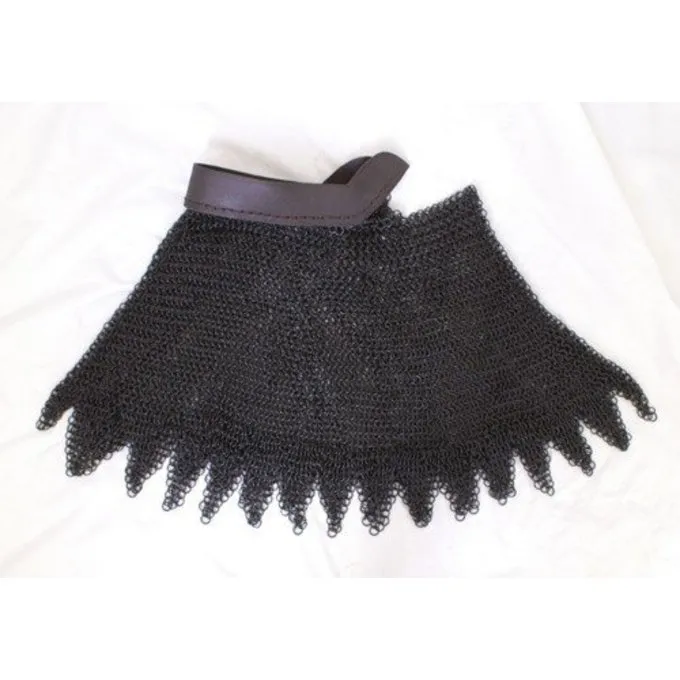 Deze maliënkraag is gemaakt van 1,6 mm dikke, gebronsde, ongeklonken ronde maliënringen met een binnendiameter van 8 mm. Hij is door middel van een 4,5 cm brede leren band aan een helm te bevestigen. De band is 54 cm lang. Gewicht ongeveer 3,5 kg.
